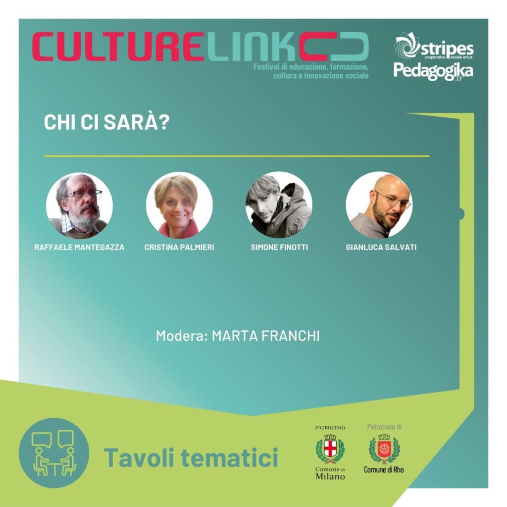 Se ne è parlato sabato 5 ottobre 2024 insieme a Raffaele Mantegazza (Professore di pedagogia presso l’Università di Milano- Bicocca), Cristina Palmieri (Direttrice del Dipartimento di Scienze Umane per la Formazione “Riccardo Massa” dell’Università degli Studi di Milano-Bicocca; docente di pedagogia generale e sociale), Simone Finotti (dirigente scolastico del Liceo “C. Cavalleri” di Parabiago) e Gianluca Salvati (pedagogista Stripes Coop).