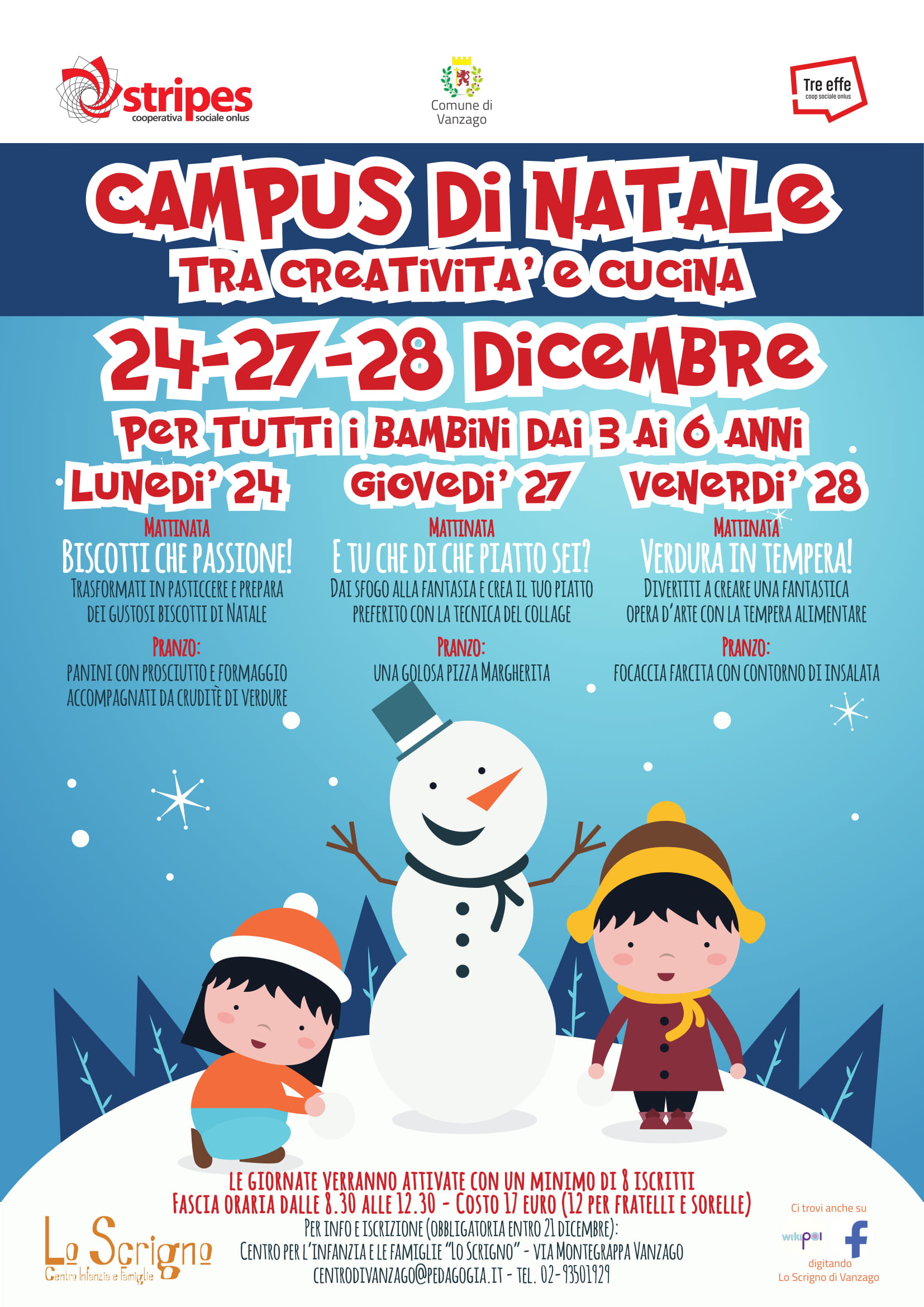 Campus di Natale tra Creatività e Cucina! Il 24-27-28 dicembre lo Scrigno di Vanzago accoglierà tutti i bambini dai 3 ai 6 anni per passare insieme le vacanze natalizie.