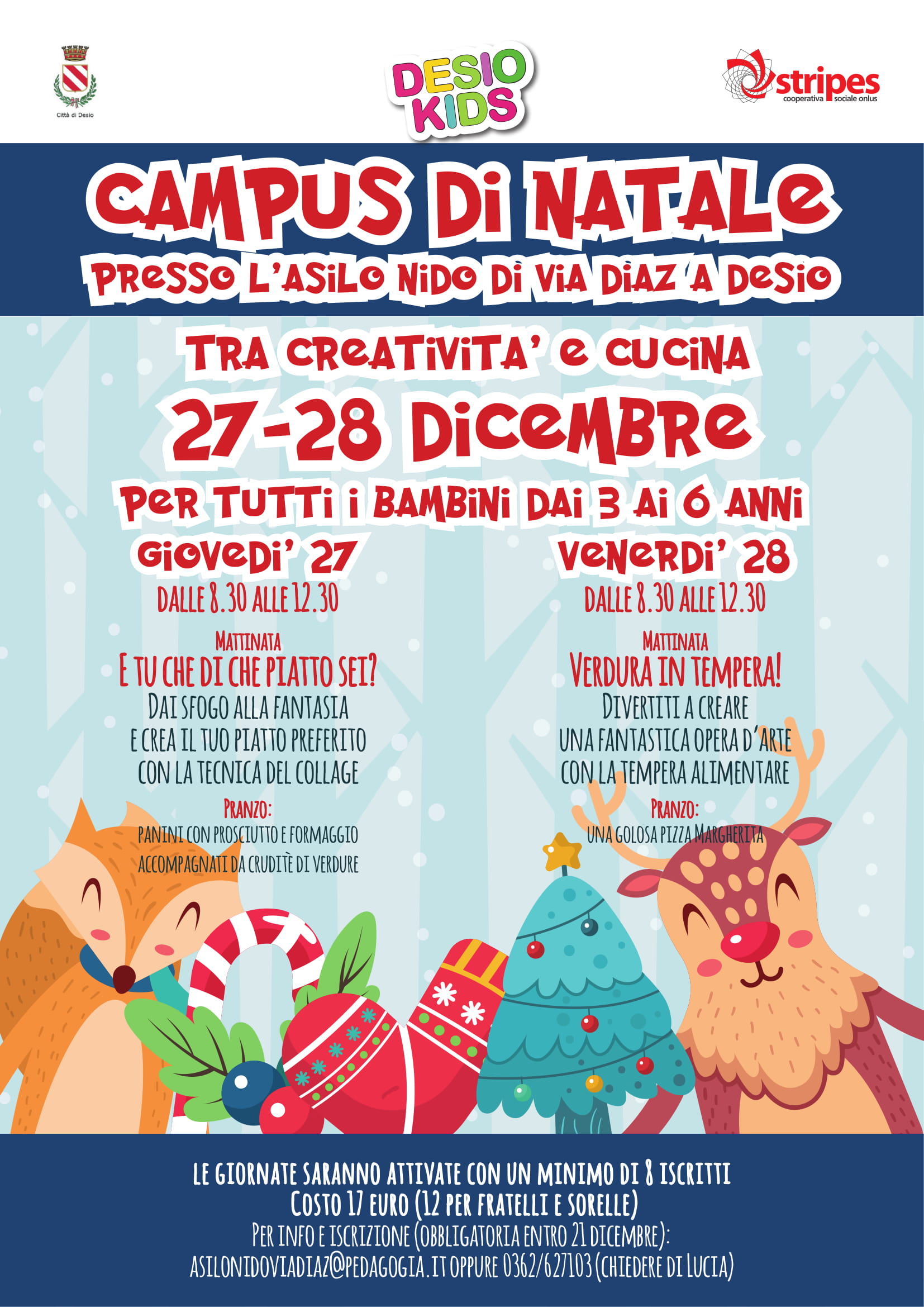 Vi aspettiamo al Campus di Natale! Per tutti i bambini dai 3 ai 6 anni. Ci divertiremo con laboratori e giochi, tra creatività e cucina..coccole e pasticci!