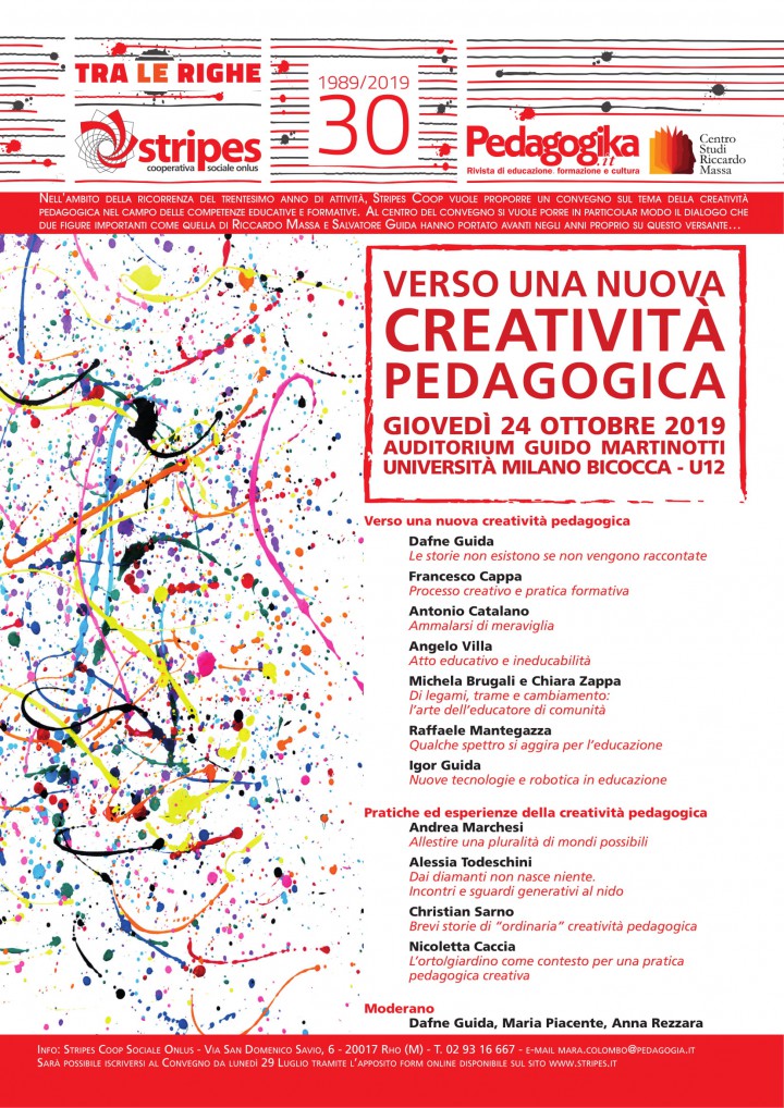 CONVEGNO VERSO UNA NUOVA CREATIVITA’ PEDAGOGICAConvegniLeggere di più Convegno: I luoghi dell’infanzia, una comunità che cresceConvegniLeggere di più SOCIAL ENTERPRISE OPEN CAMPConvegniLeggere di più FILANDO LA CURA – Storie di donne tra vita e professioneConvegniLeggere di più Ti racconto l’inclusione sociale, il nido in carcereConvegniLeggere di più Bambine e bambini nella giungla delle difficoltà di attenzione e apprendimentoConvegniLeggere di più Convegno “Io sono, io siamo” – SamarateConvegniLeggere di più Convegno “Inclusione senza confini” – Istituto Penitenziario di BollateConvegniLeggere di più Convegno Insieme per le nostre Comunità e il Welfare di domaniConvegniLeggere di più Convegno “Città e Psiche” – 11 ottobre 2018ConvegniLeggere di più