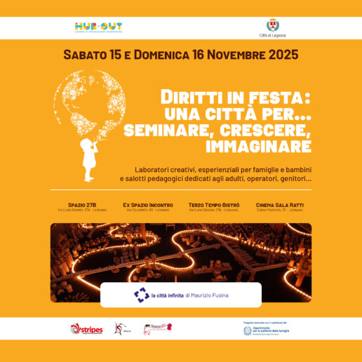 “Diritti In Festa: una città per …seminare, crescere, immaginare”, realizzato in occasione della Giornata Internazionale per i diritti dell’Infanzia e dell’Adolescenza, è un’azione del progetto “Hub Out – Luoghi di educazione sconfinata”.