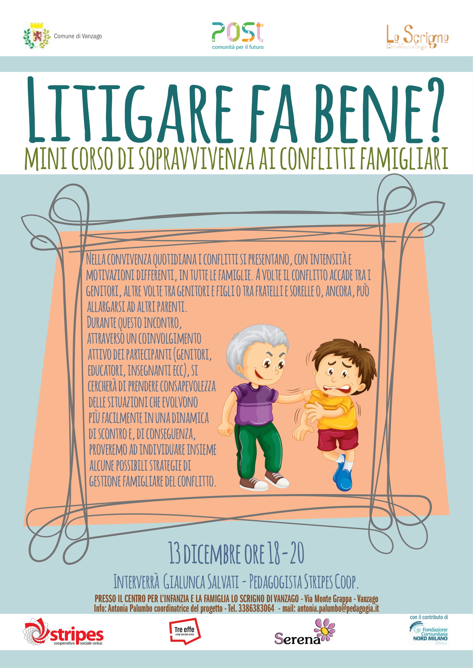 Durante questo incontro, attraverso un coinvolgimento attivo dei partecipanti (genitori, educatori, insegnanti ecc), si cercherà di prendere consapevolezza delle situazioni che evolvono più facilmente in una dinamica di scontro e, di conseguenza, proveremo ad individuare insieme alcune possibili strategie di gestione famigliare del conflitto.