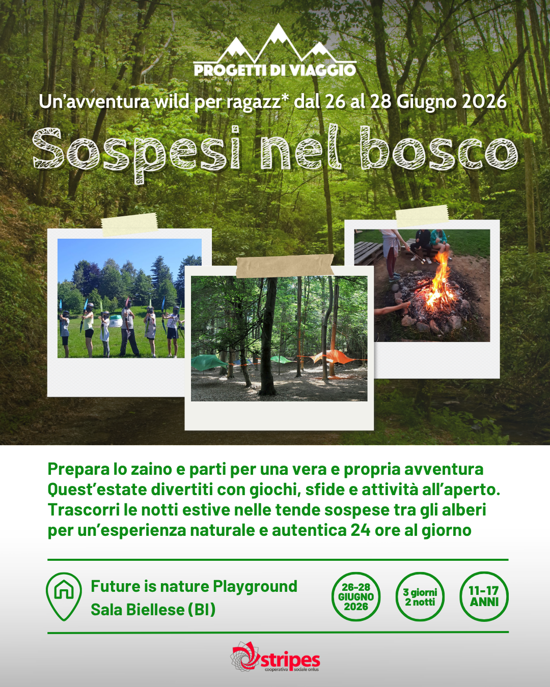 Non chiamatela semplicemente vacanza e non aspettatevi il solito campeggio: SOSPESI NEL BOSCO è l’esperienza definitiva per chi vuole sfidare la gravità e riscoprire il proprio lato selvaggio. Quest’estate, il bosco non sarà solo una cornice, ma il vero protagonista di un viaggio dedicato a chi ha voglia di mettersi in gioco, stringere amicizie autentiche e staccare la spina dalla tecnologia per riconnettersi con la natura.